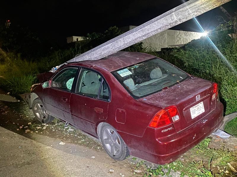 En calles del fraccionamiento Puente Moreno en el municipio de Medellín de Bravo hubo un fuerte accidente donde la conductora de un carro, marca Honda, perdió el control y arrancó un poste de concreto, avanzando unos metros con el poste encima de la unidad.