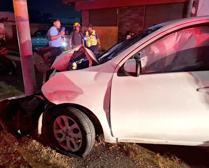 Esto se dio la noche de este sábado, sobre la avenida Lázaro Cárdenas donde circulaba el chófer de un carro marca Nissan, tipo March, de color blanco, cuyo conductor al parecer iba en estado inconveniente, viajaba con las llantas ponchadas.