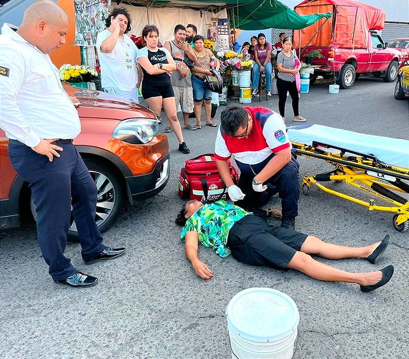 Paramédicos de Médica del Futuro acudieron al sitio para brindarle atención médica y trasladaron a la mujer al hospital del IMSS número 68, donde fue ingresada para su valoración.