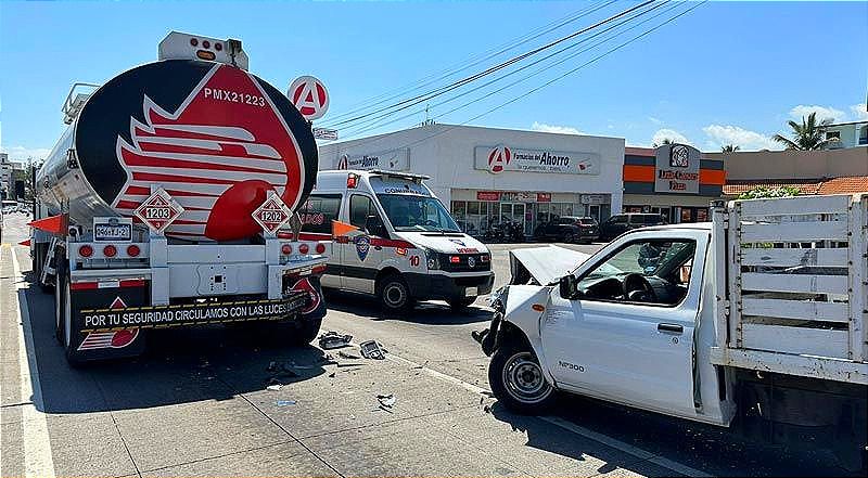 La unidad de color blanco acabó contra la parte trasera de la pipa, y su conductor con golpes en el cuerpo.