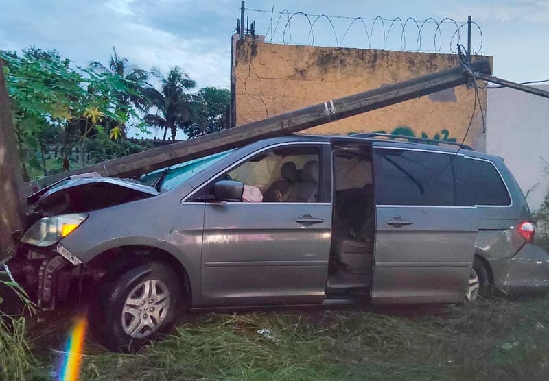 Una camioneta tipo vagoneta, de color gris, acabó arrancando dos postes de concreto, luego de golpear una barda al salir de la carpeta de rodamiento, a la altura hacia el acceso a la colonia Progreso.