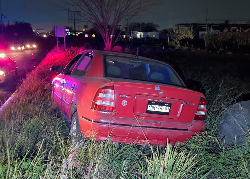 De pronto, algo lo hizo perder el control al conductor, ya que acabó sobre el camellón, trepándose en una loma de tierra, a unos pasos del retorno de la autopista, a la altura de Geo Los Pinos.