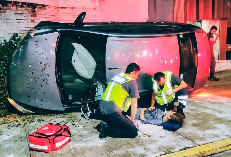 Al impactarse contra la barda, el automóvil volcó sobre el costado izquierdo, quedando en esa posición, poco después arribaron paramédicos de Bomberos Conurbados para atender a la conductora que resultó lesionada.