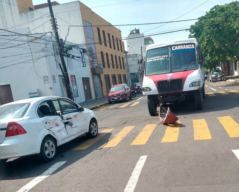 El percance tuvo lugar en la intersección de la avenida Miguel Hidalgo y la calle Benito Juárez, cuando Gladis Angelina García P., conductora de un Chevrolet Aveo blanco, explicó que en lugar de frenar, aceleró por error cruzándose en el trayecto de un camión urbano de la ruta Carranza - Puente.