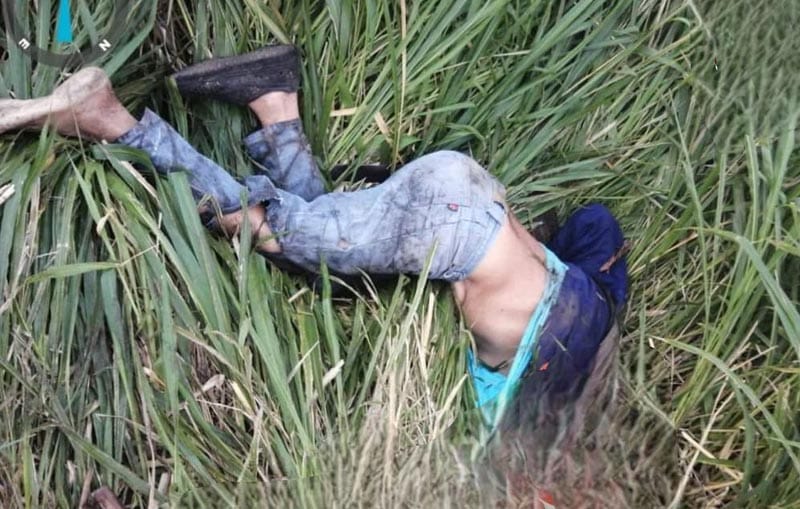 En el lugar, precisamente en el kilómetro 088+800, fue hallada siniestrada una moto Italika FT150 color negro con rojo, placas 1TYS4 de Veracruz, y a tres metros estaba tendido el cadáver del cortador de caña identificado como Norberto Goxcon Salazar, de 59 años.