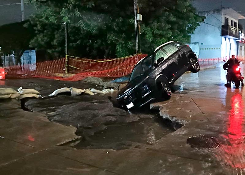 A la altura de la colonia Adolfo López Mateos en la ciudad de Veracruz, este fin de semana, una camioneta cayó en un gran deslave sobre la avenida Adolfo Sugasti, debido a la poca visibilidad y calles inundadas tras el aguacero del domingo.