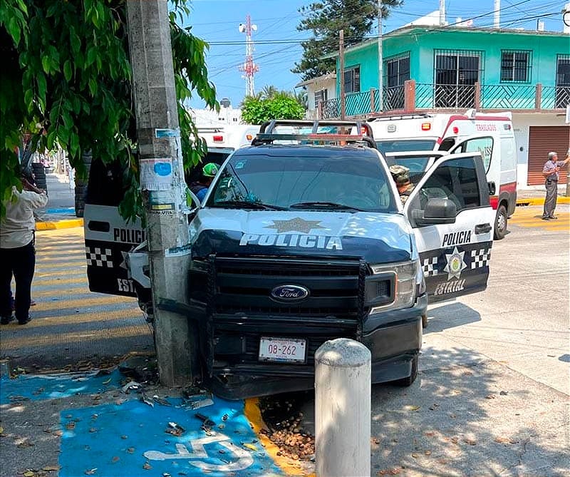Luego de la colisión, la unidad policial salió proyectada y acabó por estrellarse contra un poste de concreto de la Comisión Federal de Electricidad, mientras vecinos al escuchar golpe, salieron y pidieron ayuda.