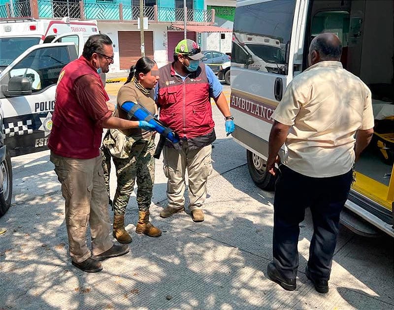 A ese punto se trasladaron dos ambulancias, tanto del ISSSTE como de Sesver, cuyo personal brindaron los primeros auxilios a la oficial de la Policía Naval que iba de conductora, la que iba de copiloto, otro elemento hombre que iba atrás, así como una civil que los acompañaba.