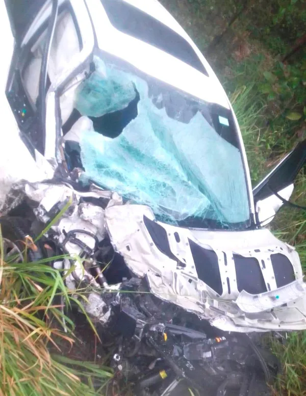 Encontraron en el lugar a una camioneta Nissan Urvan color blanco, razón social Transportes San Miguel Soyaltepec, de la marca Toyota, con el frente dañado, además una camioneta marca Jeep color blanco fuera del camino, siniestrada.