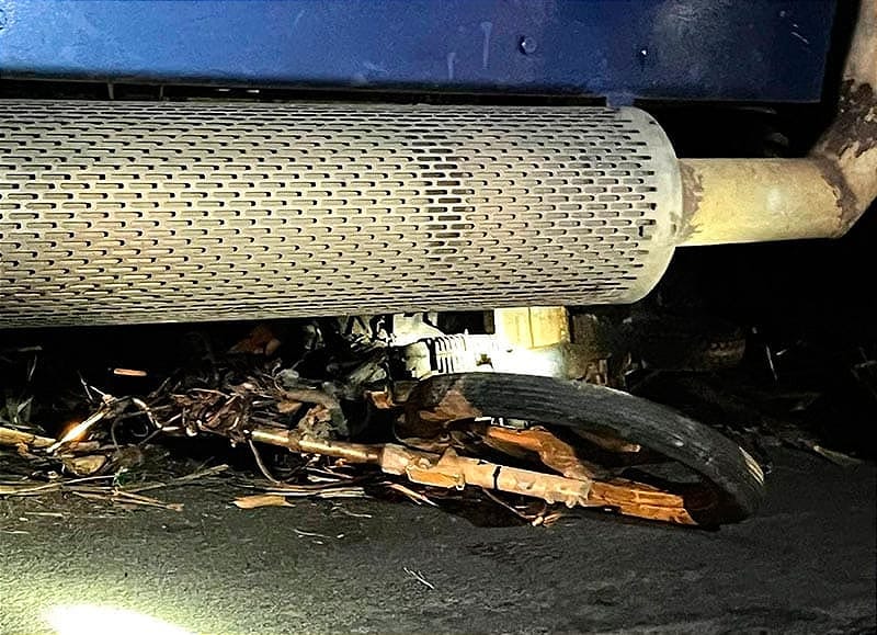 En el lugar fue localizado un camión cañero de la marca International, color azul, y debajo de la unidad una motocicleta color negro, con el conductor, ya sin vida.