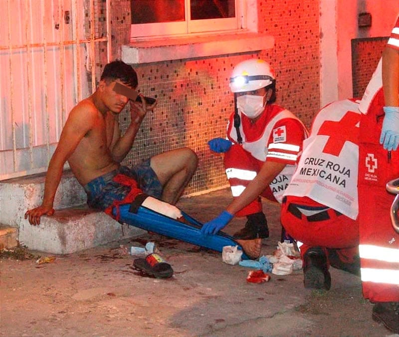 Los paramédicos de la Cruz Roja brindaron atención médica al herido, identificado como Raúl Núñez Becerril, de 23 años, quien fue trasladado al Hospital Regional con una grave herida en la pierna.