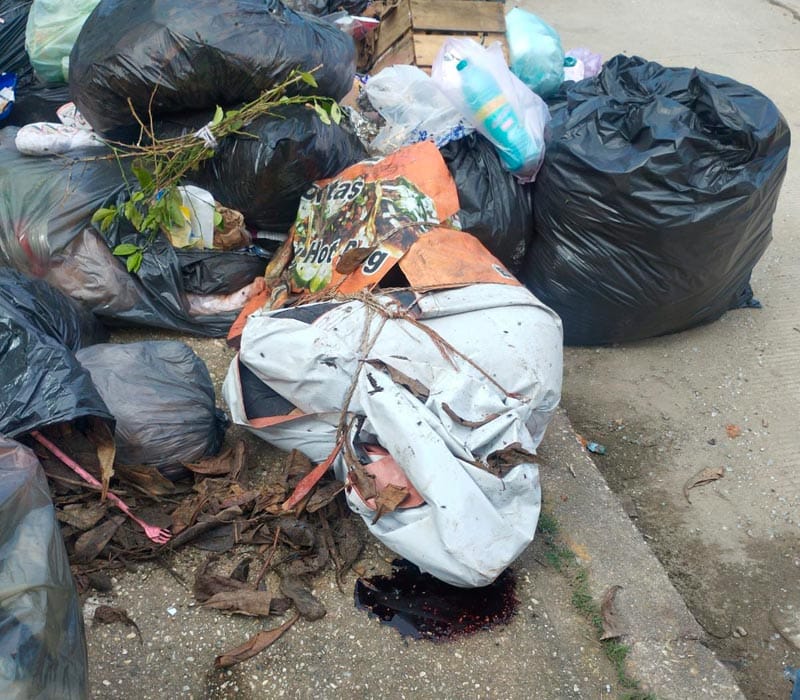 El hallazgo ocurrió en el cruce de las calles Popolucan y Siete Tribus, donde vecinos que acudían a depositar sus residuos detectaron un bulto envuelto en una lona, del cual escurría sangre, situación que de inmediato despertó sospechas.