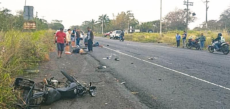 Dos tripulantes de una motocicleta resultaron lesionados en un accidente que ocurrió sobre la carretera estatal a la entrada de Tlalixcoyan.