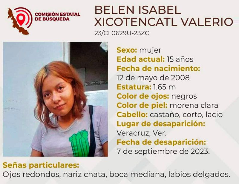 De acuerdo a la ficha de búsqueda, se trata de Belén Isabel Xicoténcatl Valerio, quien desapareció desde el pasado 07 de septiembre, y a la fecha no se sabe nada de su paradero.