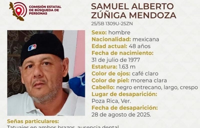 Y también desde el día 28 del mismo mes se desconoce la ubicación de Samuel Alberto Zúñiga Mendoza.
