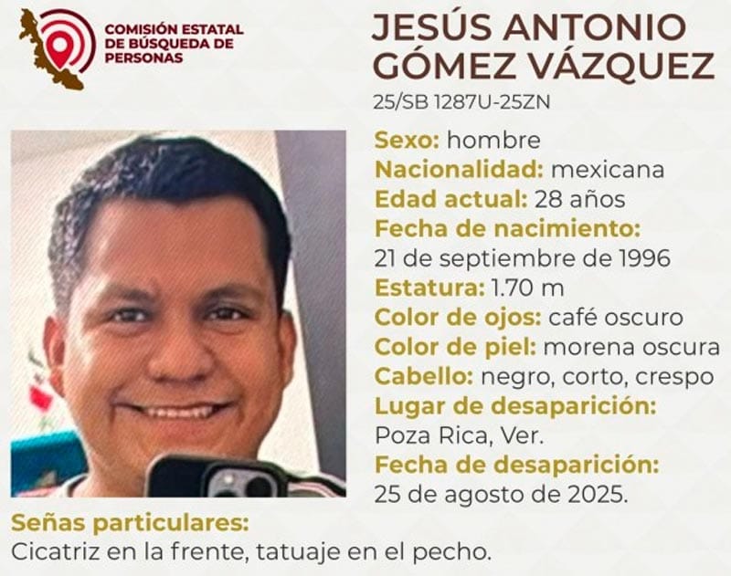 Mientras que Jesús Antonio Gómez Vázquez de 28 años originario de Coxquihui también desapareció en Poza Rica el día 25 de agosto.