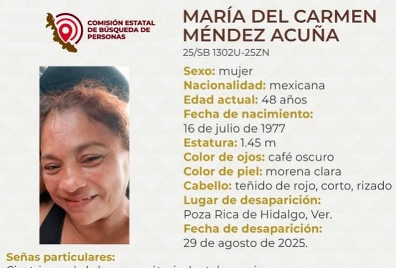 Se trata de Miriam Cristel Rodríguez Quintero de 27 años de edad y que desapareció el lunes 01 de septiembre y de María del Carmen Méndez Acuña de 48 años de edad que fue vista por última vez el 29 de agosto.