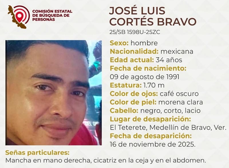 Mientras que, José Luis Cortés Bravo, tiene su domicilio en El Teterete, Medellín; no se tienen noticias de él desde el 16 de noviembre.