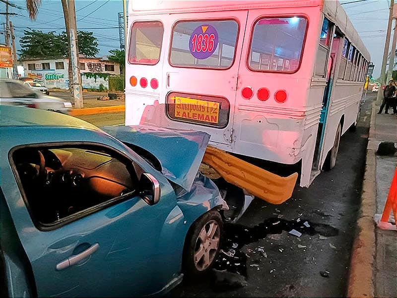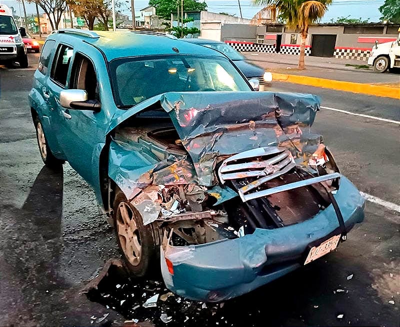 A la altura del fraccionamiento Floresta, en la ciudad de Veracruz, un conductor de un carro Chevrolet, tipo HHR colisionó contra camión 1836, de la ruta Las Amapolas, dejando dos personas lesionadas y daño materiales.