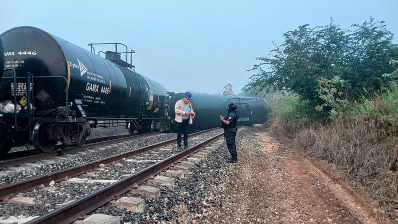 Al sitio se movilizó personal de Protección Civil y constataron que un total de cuatro furgones tipo tolva cargadas con arena y 3 carros tanque que iban con cloro líquido estaban descarrilados, con máquina 4432, volcados a un lado de las vías.