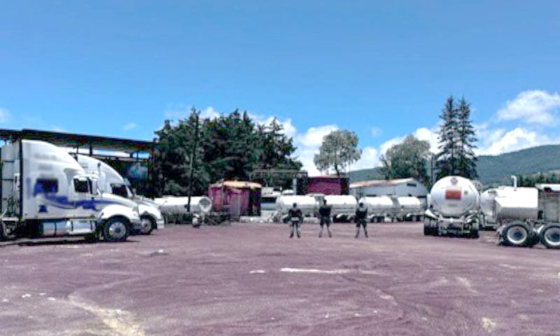 Agentes federales de la FGR catearon un búnker de huachicoleros en el barrio Cruz de la Misión, en Las Vigas, logrando asegurar 933 mil litros de hidrocarburos, 64 vehículos, tres cisternas, contenedores y un predio donde realizaban la actividad ilícita.