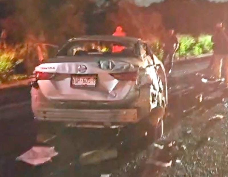El fatal percance se reportó alrededor de las 22:30 horas de ayer, en los momentos que automovilistas que cruzaban por el lugar vieron el coche destrozado, marca Nissan, tipo Sentra, color plata, con placas de circulación YUP-605-B del estado.