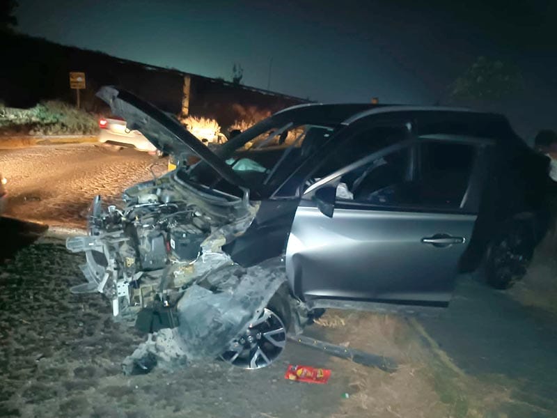 Dos sujetos, a bordo de una camioneta se estrellaron con unos muros que se encuentran en el acceso al fraccionamiento Colinas de Santa Fe, al norte de la ciudad de Veracruz.
