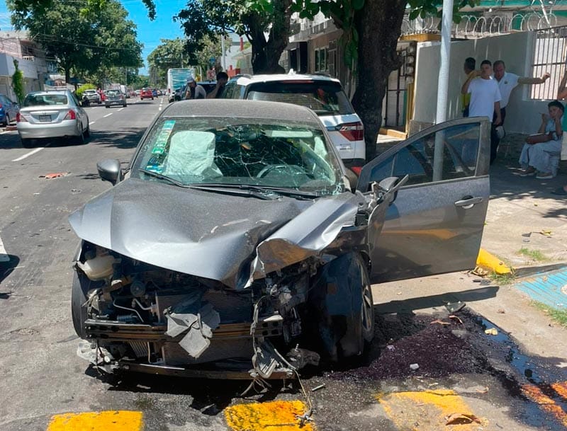 En céntricas calles de la ciudad de Veracruz, hubo un aparatoso accidente vial, en la avenida 20 de Noviembre, en donde se vieron inmiscuidos cuatro unidades, entre ellas un camión del servicio urbano.