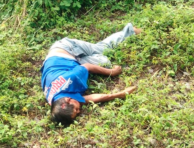El policía estatal Ramírez Terrón acudió al lugar y constato que estaba una persona muerta, de unos 65 años, complexión delgada, de playera azul y con un pantalón de mezclilla.