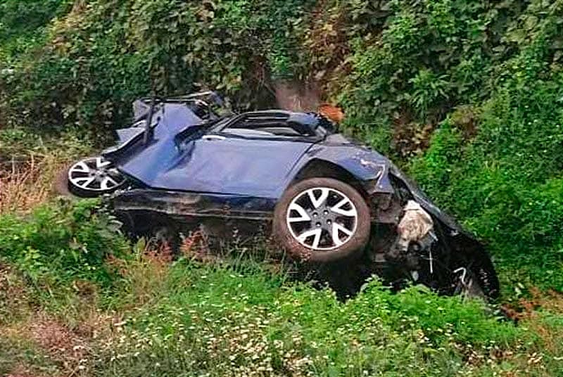 El carro tipo Versa salió proyectado, impactándose contra el muro de contención, saliéndose del camino, quedando volcado hacia su costado izquierdo, cayendo en la cuneta.