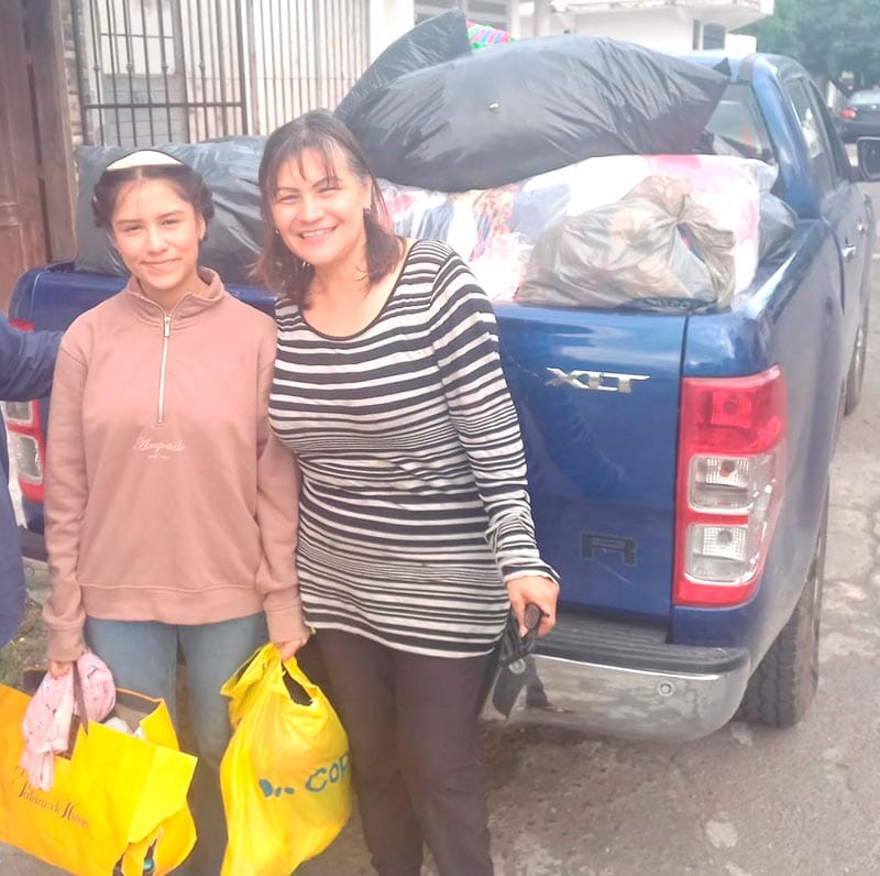 La jornada inició el 22 de diciembre con la distribución de ropa a personas y familiares de pacientes en la periferia del HAEV, repartiéndose ropa que transportaron en diez bolsas grandes.