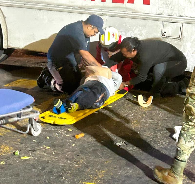 Tras el incidente, la mujer quedó debajo del vehículo; el operador detuvo la marcha al percatarse de la situación y solicitó apoyo a los servicios de emergencia a través del 911.
