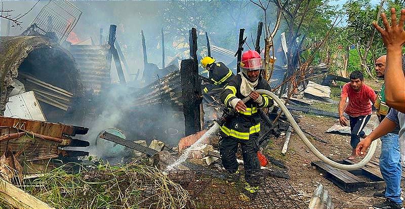 Uno de los propietarios de una de las viviendas, Mauro N, dijo que estaba guisando con la leña y en descuidó por ir por agua, vio que se estaba incendiando y las llamas habían alcanzado la casa de su primo.