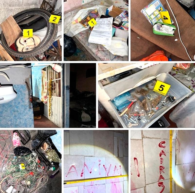 En la inspección, los detectives aseguraron una máscara, diversos materiales de hule presuntamente correspondientes a neumáticos, cables eléctricos, una pipa, hierba verde seca con características de marihuana y armas blancas.