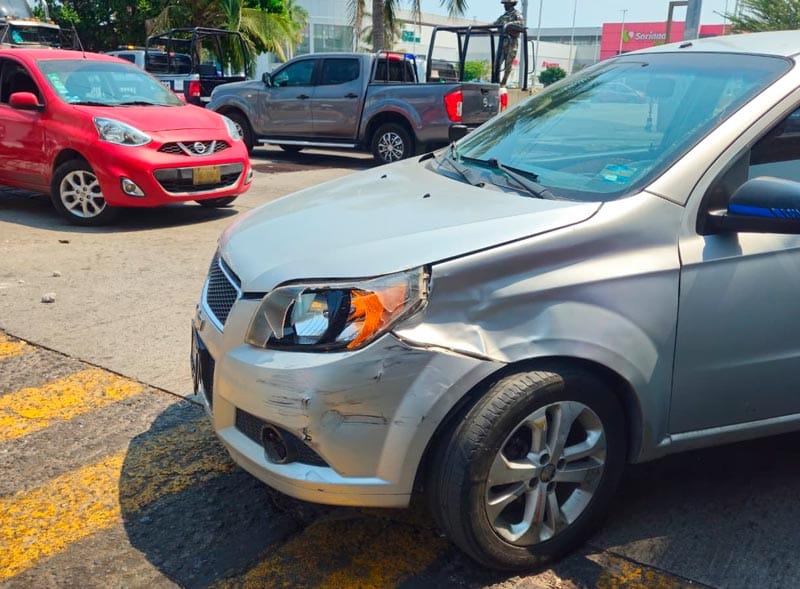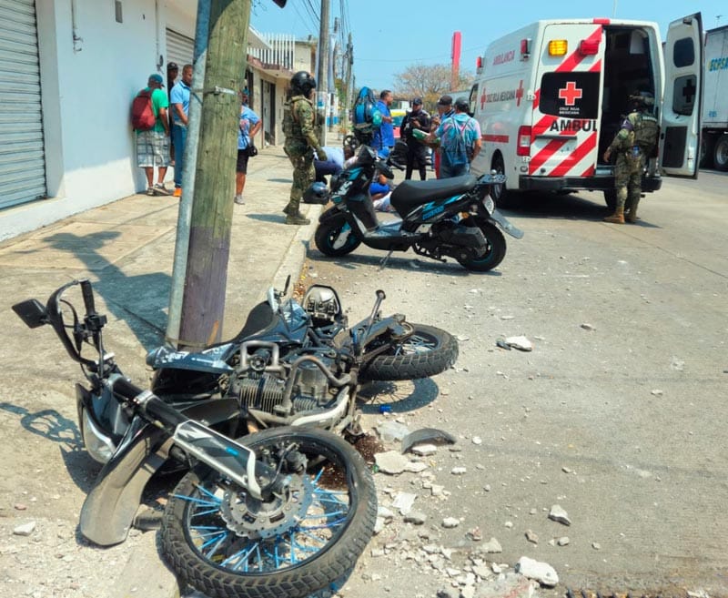 A la altura de la colonia Quinta María, en el municipio de Veracruz hubo un aparatoso accidente entre un carro Aveo y una motocicleta Italika, dejando severos daños y dos personas lesionadas.