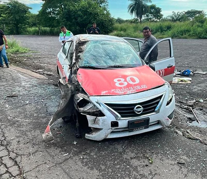 En la carretera estatal Veracruz–Manlio Fabio Altamirano, cerca de la empresa Pilgrim’s, hubo un fuerte percance, en donde un taxi colisionó contra un automóvil, marca Volkswagen, de color rojo, dejando dos personas lesionadas y daños materiales cuantiosos.