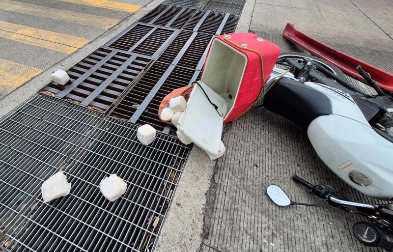 El impacto provocó que tanto el conductor como las tortillas quedaran esparcidos sobre el pavimento.