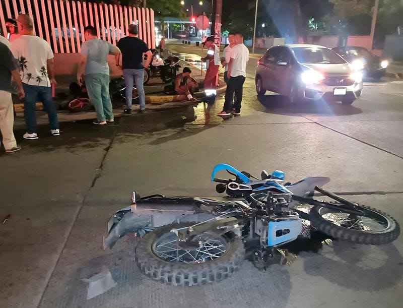 Un aparatoso accidente se dio entre dos motociclistas en la intersección de Díaz Mirón y Tuero Molina, en la colonia Centro, movilizándose personal de emergencia y agentes de vialidad.