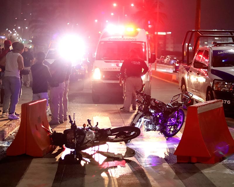 Dos motociclistas resultaron lesionados al chocar contra bloques de plástico macizo cuando circulaban sobre el Boulevard Ávila Camacho en el municipio de Boca del Río.