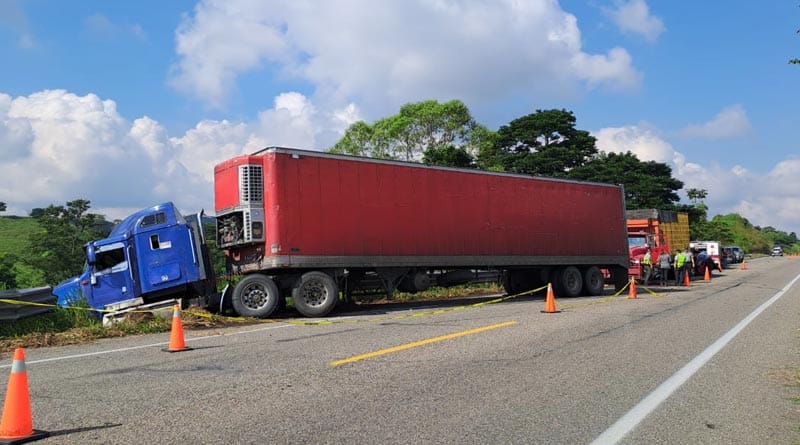 El choque entre dos unidades terminó en una carambola cuando un tráiler que viajaba a alta velocidad, embistió a un automóvil Kia, y este a su vez contra un torton que transportaba pollos, lo que dejó como saldo dos personas muertas.