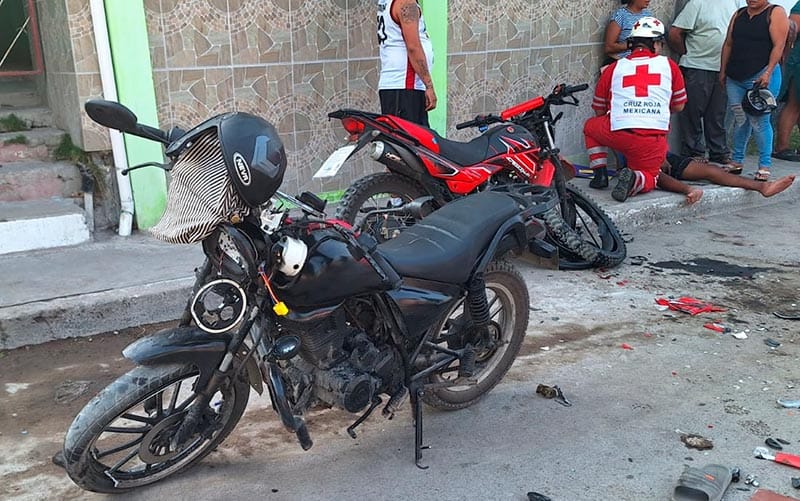 Ahí dos jóvenes circulaban en una motocicleta, marca Vento, tipo Crossmax sobre la calle Kabah y al cruce con la calle Xcaret, fueron impactados de frente por otro motorizado, el cual iba en una motocicleta, marca Vento, tipo Chopper, quien habría invadido carril.