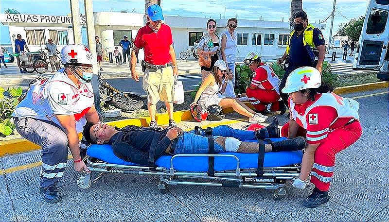 A la altura de la escuela Náutica Mercante, sobre el bulevar Manuel Ávila Camacho, en el puerto de Veracruz, una pareja terminó accidentándose en su motocicleta y acabar en el Hospital Naval.