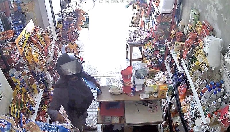 Ante la dificultad para abrir la caja con el arma blanca, el asaltante opta por tomar la tablet utilizada para el registro de mercancía y ventas.
