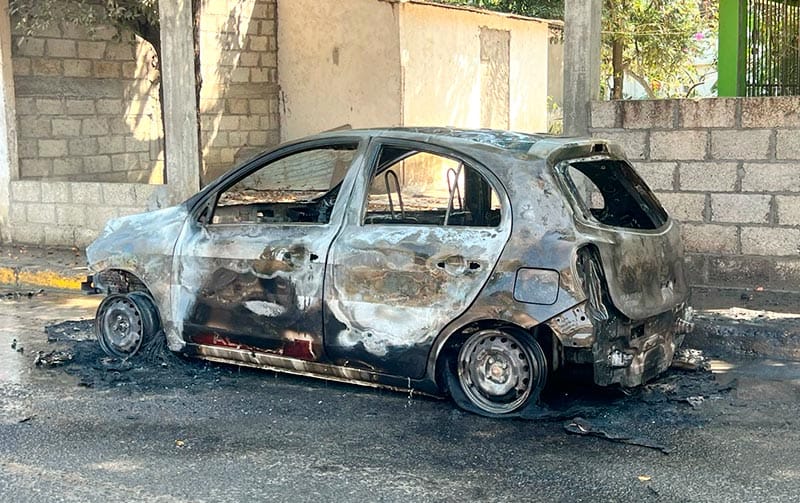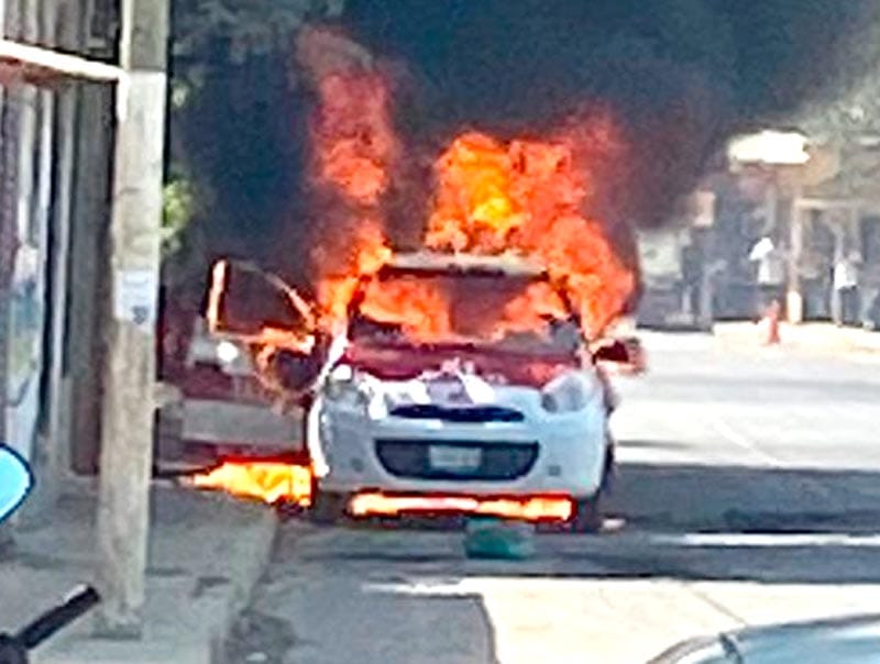A las 14:10 horas del viernes, policías de Fuerza Civil atendieron auxilio en Pueblo Nuevo, donde reportaban un taxi incendiado intencionalmente por hombres desconocidos.