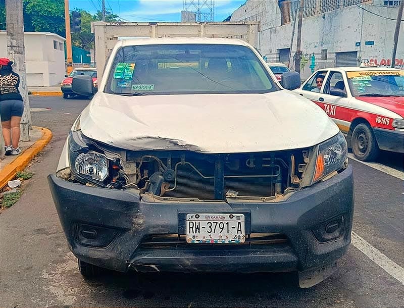 El percance involucró una camioneta Nissan tipo estaquita con placas RW-3771-A del estado de Oaxaca, conducida por Viviana Nataly Hernández Hernández, y un automóvil Chevrolet Beat al servicio del transporte público, con placas A581XCZ y número económico VB-4899, manejado por José Ulises Torres Lagunes.