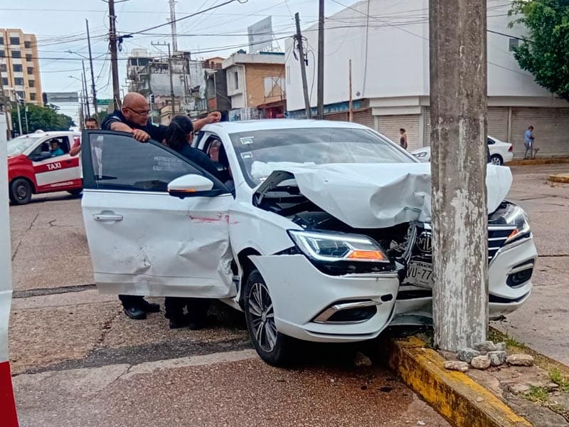 Un aparatoso accidente registrado la mañana del lunes en la colonia Centro de Coatzacoalcos dejó daños materiales estimados en más de 100 mil pesos, aunque por fortuna no se reportaron personas lesionadas de gravedad.