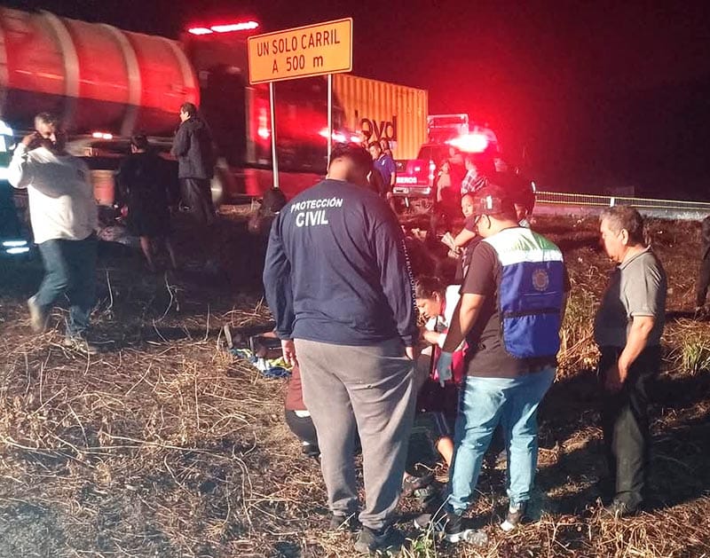 Operadores de la línea de emergencias 911 reportaron accidente con heridos en el kilómetro 085+500, La Tinaja-Cosamaloapan, cerca de caseta de cobro de Cosamaloapan, trasladándose en minutos varias ambulancias de Protección Civil.