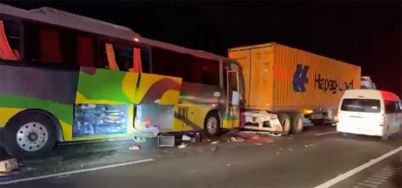 AUTOBÚS CHOCO CONTRA TRÁILER CON SALDO DE 15 HERIDOS