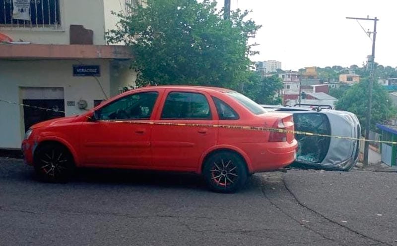 A la altura de la colonia Chapultepec, de la ciudad de Veracruz, hubo una aparatosa volcadura tras el impacto entre un carro marca Chevrolet, tipo Corsa contra un automóvil, marca Hyundai, tipo i10, provocando que este último terminara sobre su costado derecho.