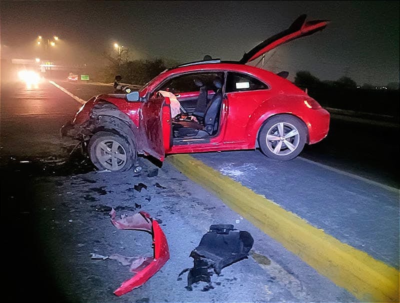 Ahí el conductor de la camioneta, marca Chevrolet tipo Tracker se vio sorprendió al ver que, en sentido contrario y hacia él, circulaba un automóvil a gran velocidad, marca Volkswagen, tipo Beetle.